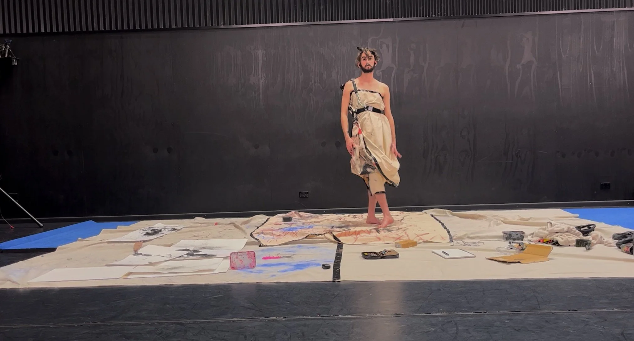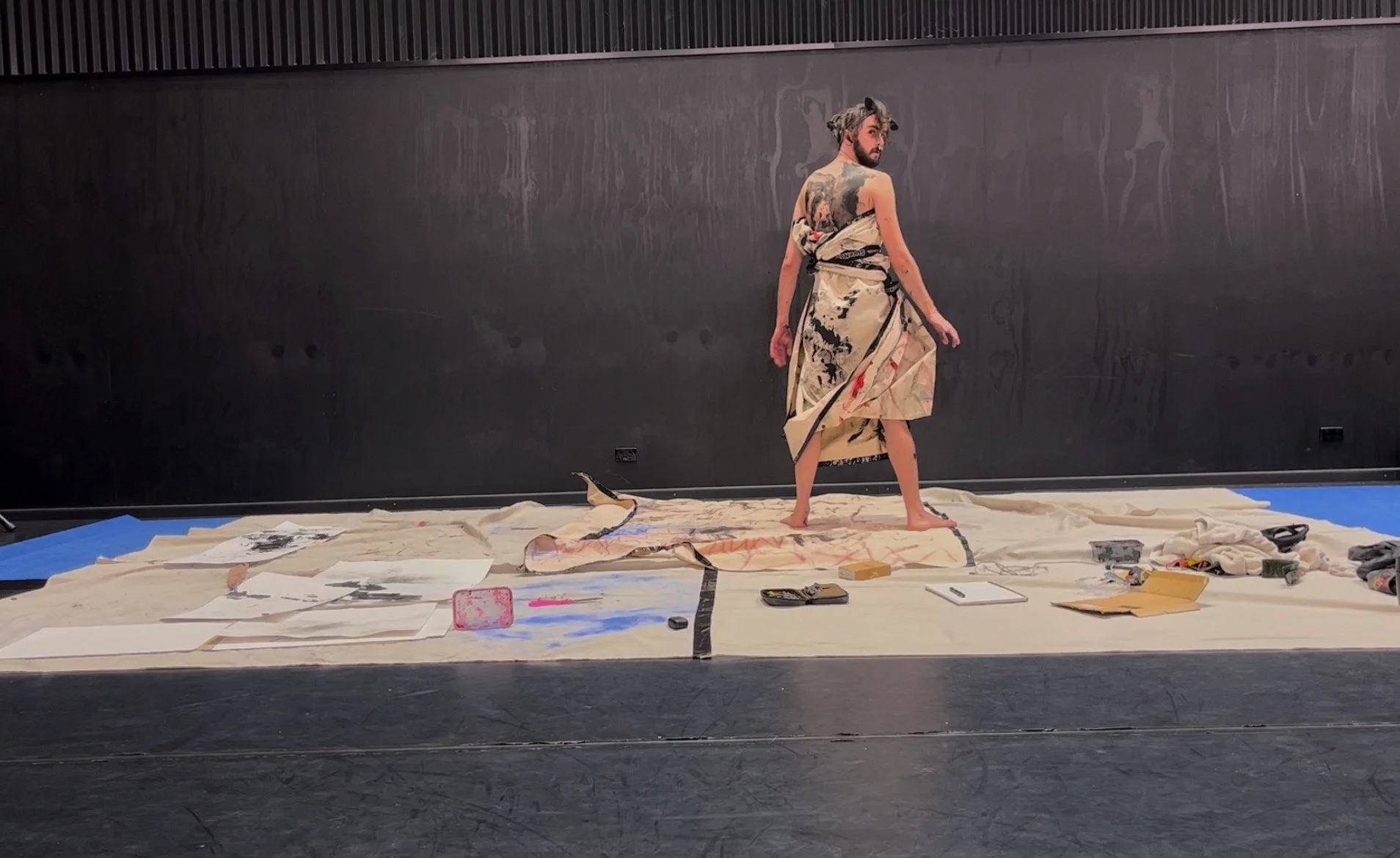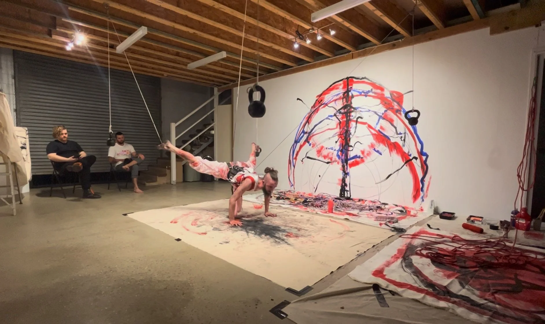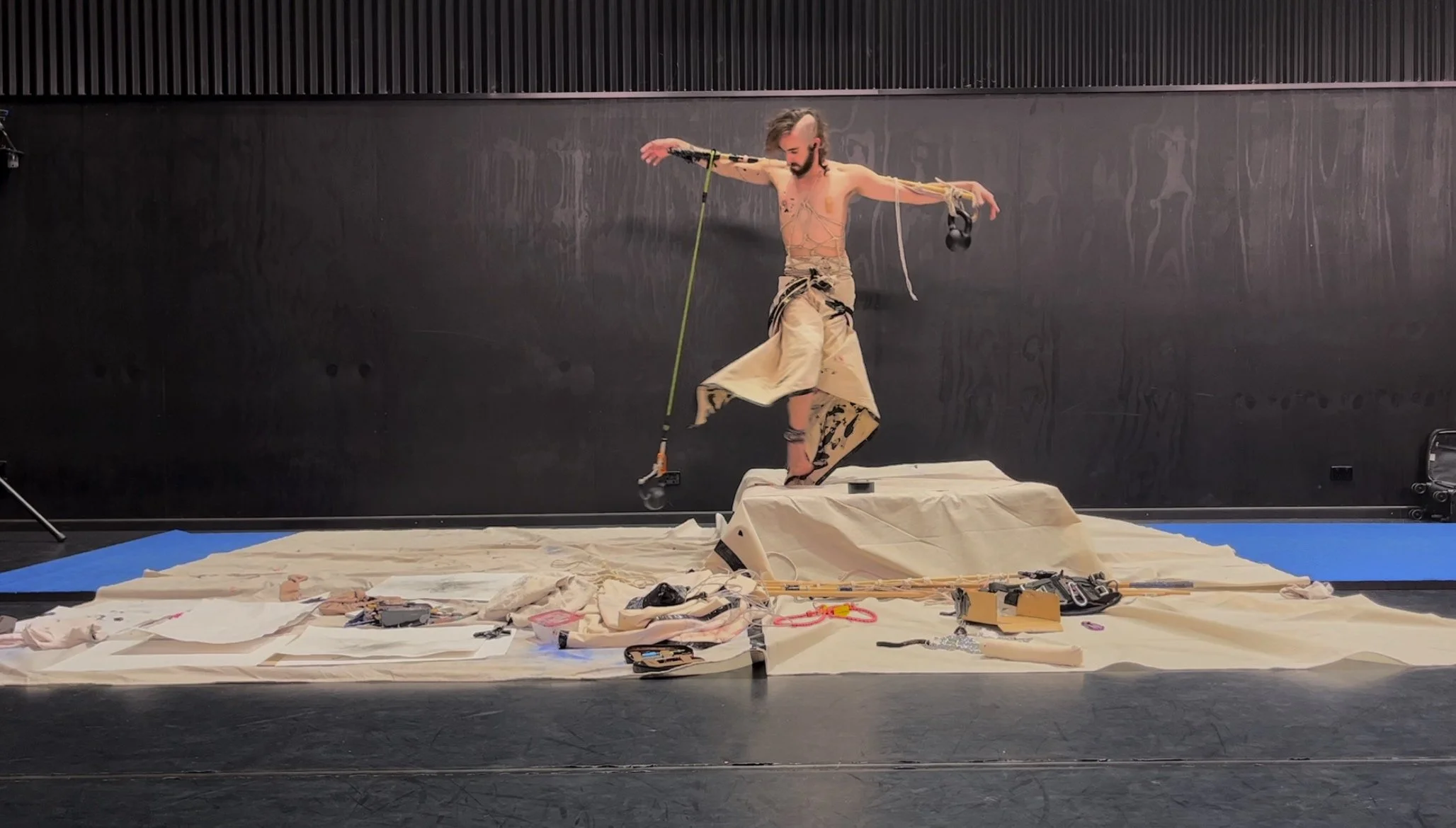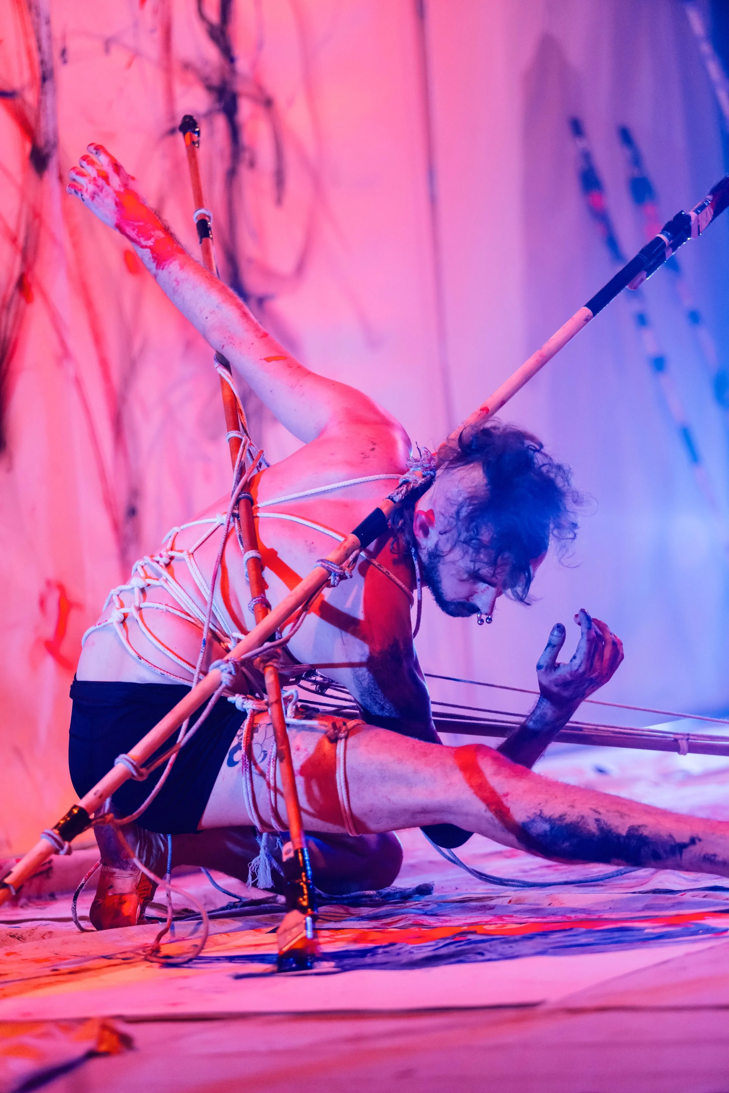 A Body Which Draws Itself is an ongoing, iterative project exploring the body’s capacity for recording an image of itself. Utilising bondage, predicament and counterweights, Micah attempts to place the body into a situation in which the reflexes, movements and intuitive travel through space make marks that record the body’s experience. By placing the body in these states, Micah is exploring whether their focussing on motor functions in predicament scenarios can allow a flow-state to emerge, encouraging organic mark making and placing a limit on conscious, aesthetic decisions in the artwork created.